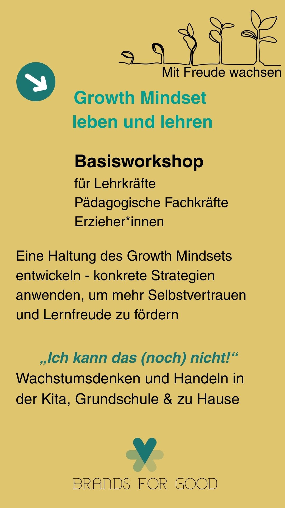 Mit dem Growth Mindset Workshop gelingt es Lehrkräften, ein Wachstumsdenken einzuführen, konkrete Strategien für herausfordernde Situationen zu nutzen, Selbstvertrauen in Kindern zu stärken und Wachstumsschübe in Kita, Grundschule und zu Hause zu fördern.